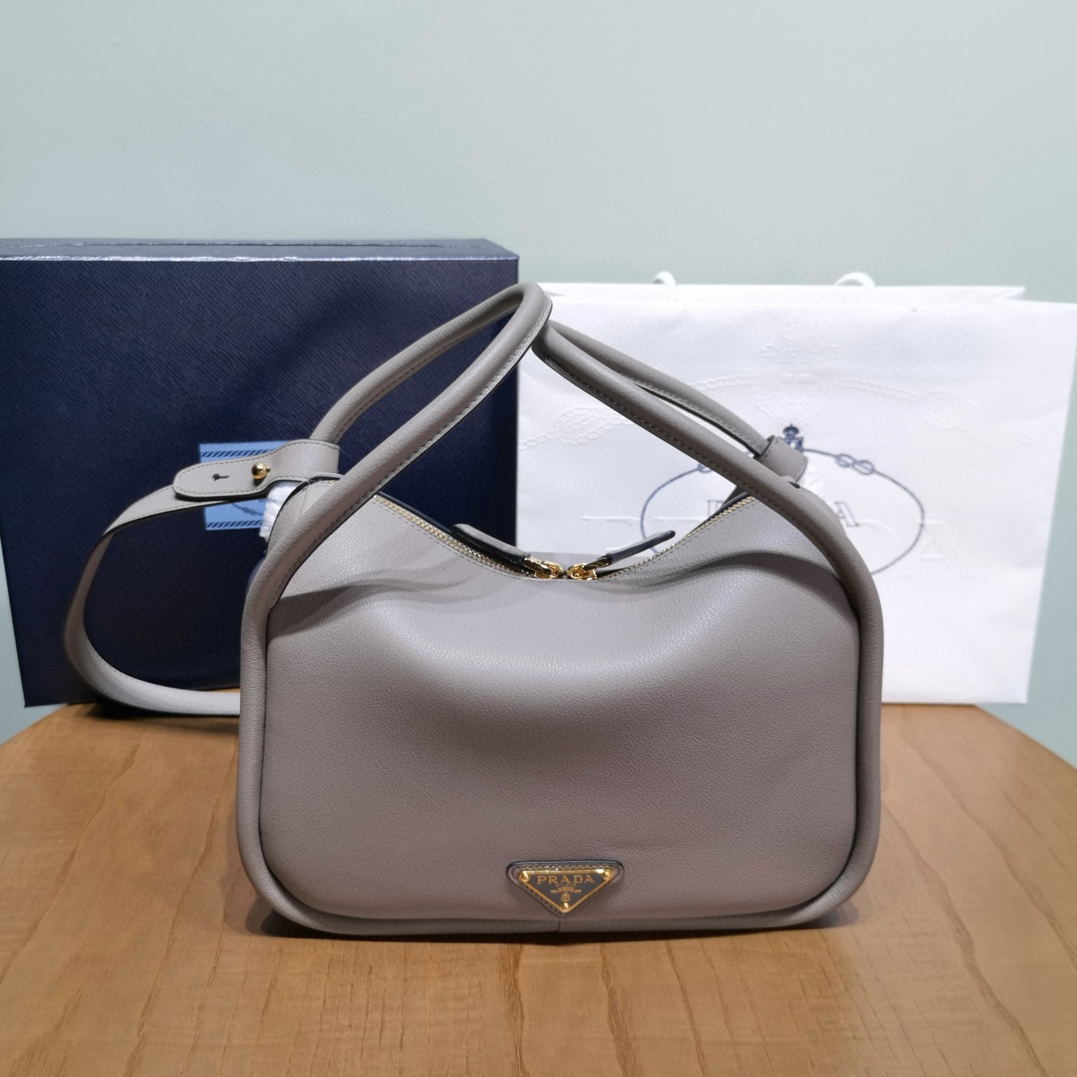 PRADA普拉達是什麽材質的 官方網站新款 灰色Darling皮革手袋