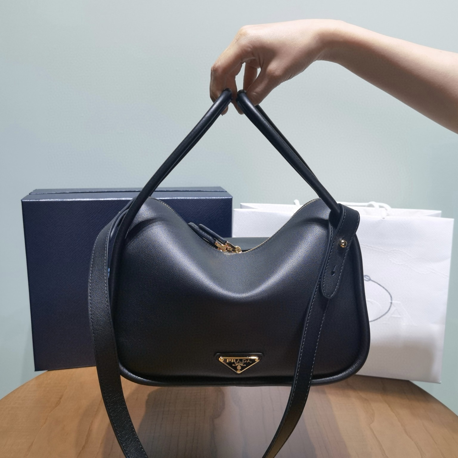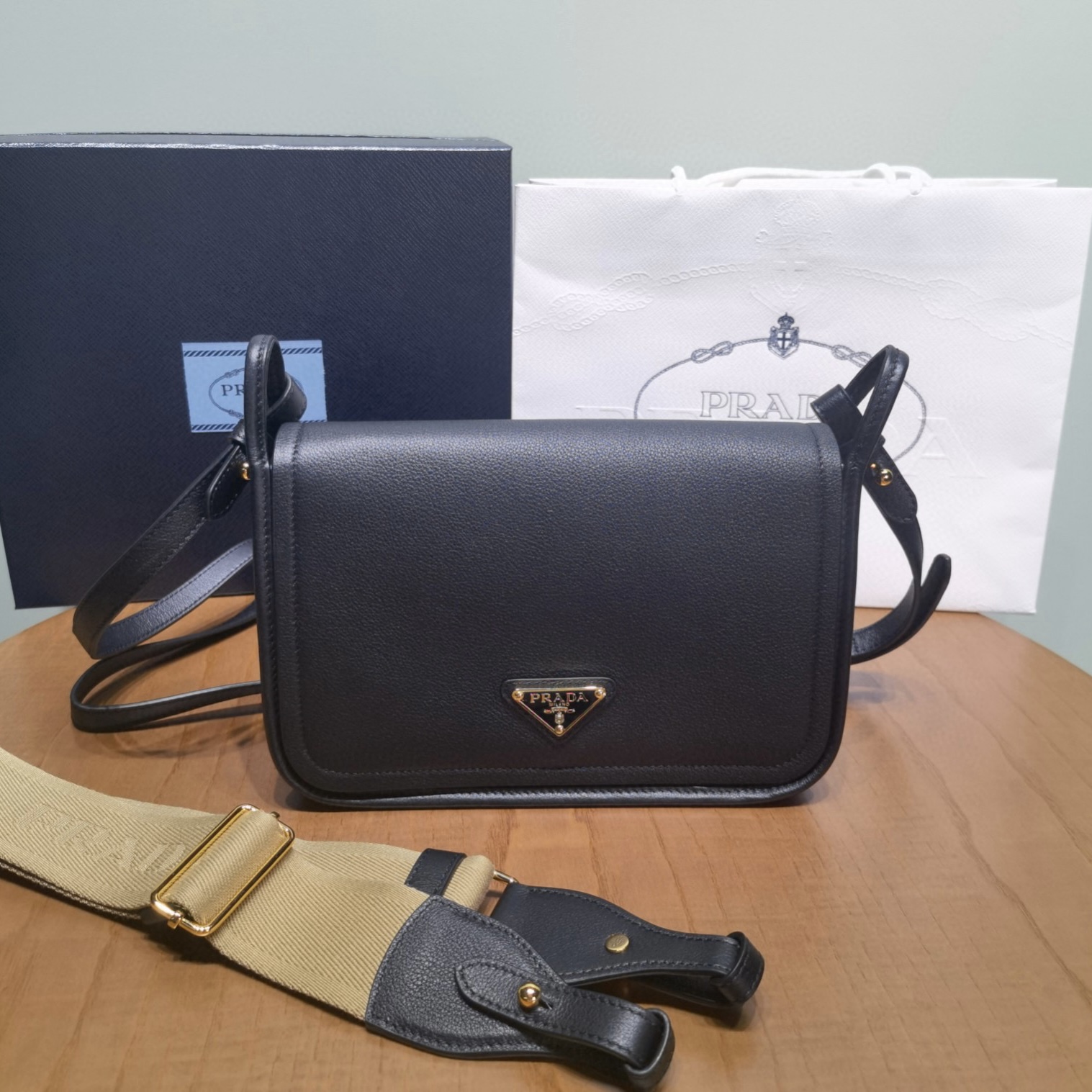 PRADA普拉達女士包包2025官網最新款式 黑色牛皮革單肩包斜挎包