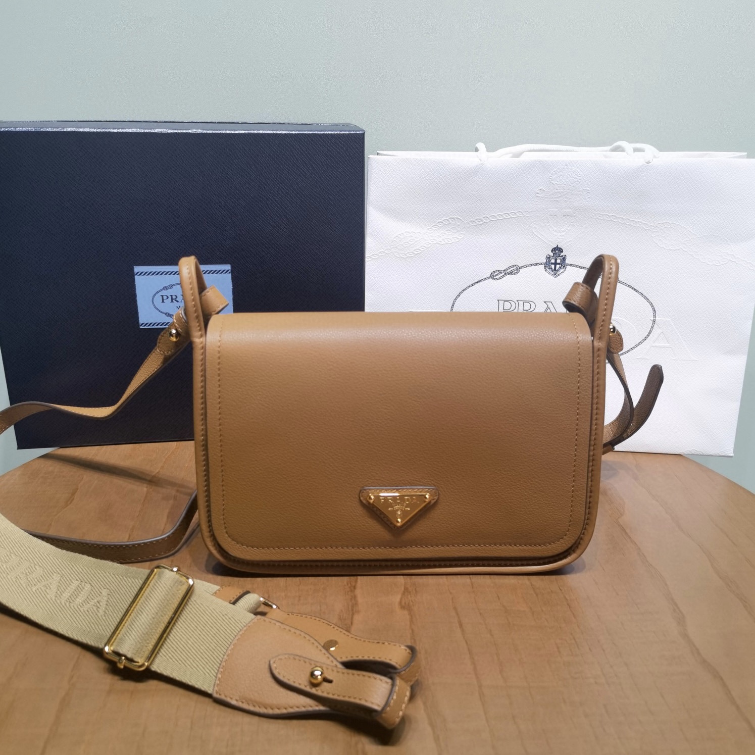 PRADA普拉達包包新款官方網站專櫃價格表 棕色皮革肩背包