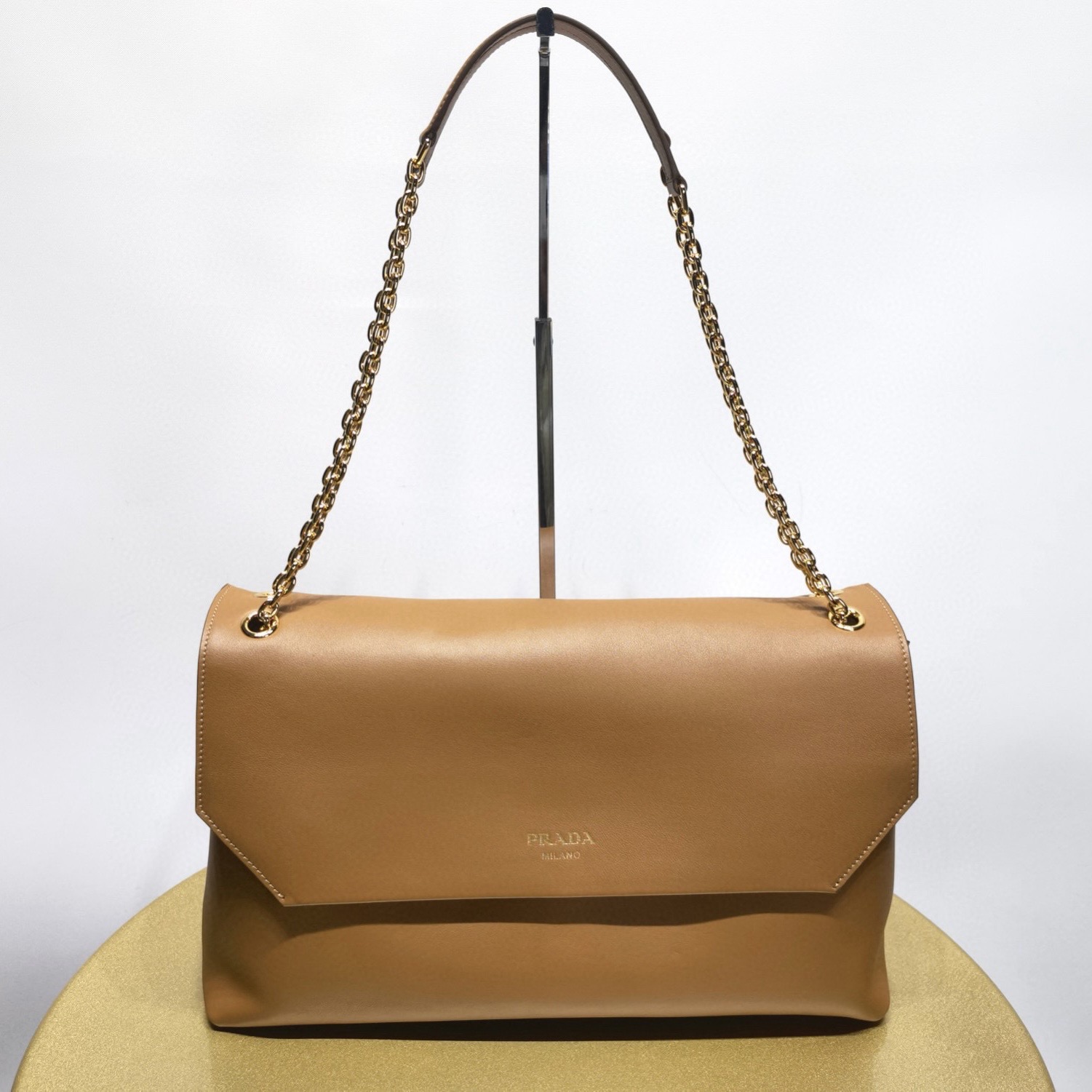 普拉達Prada包包官網專櫃如何分辨真假棕色小牛皮單肩包
