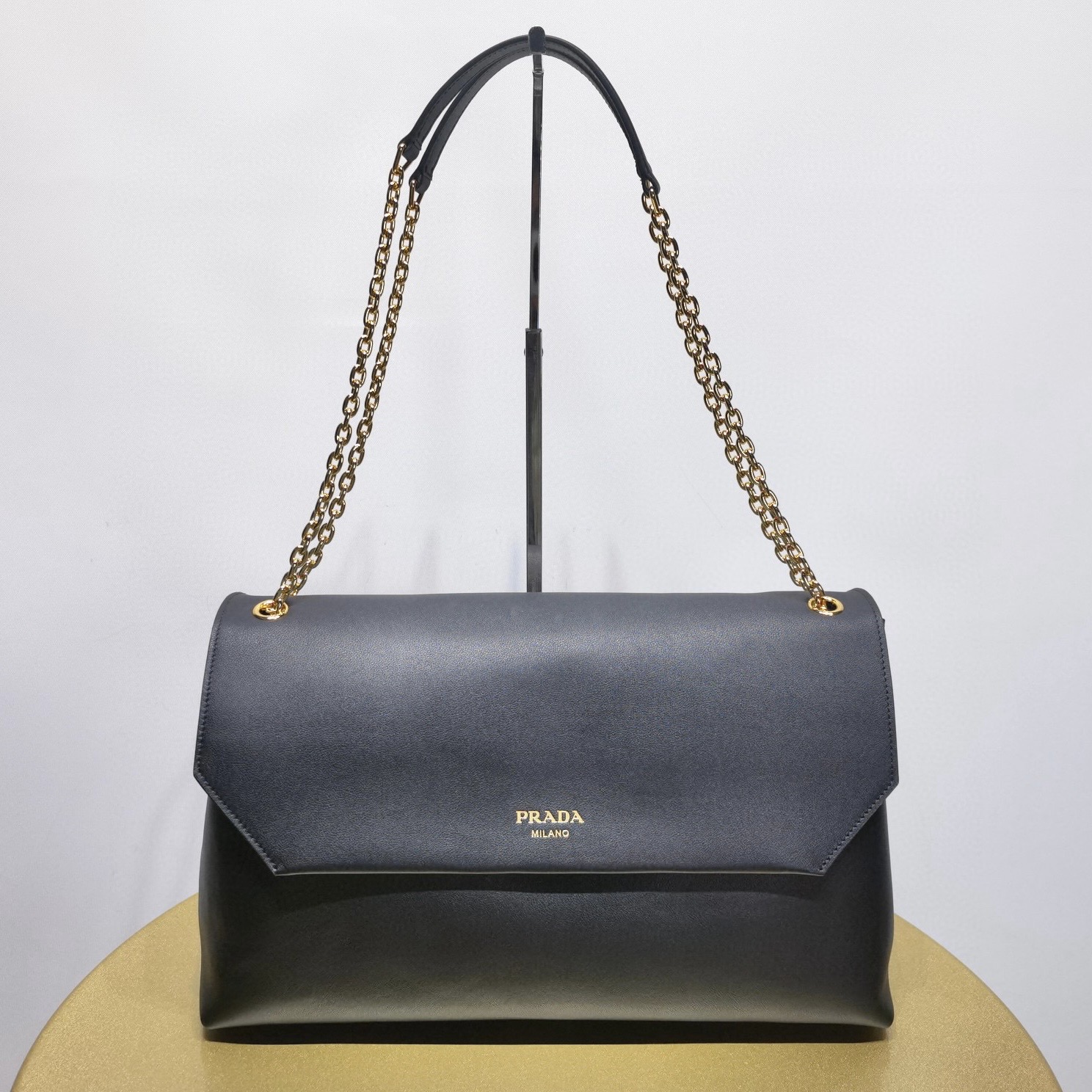 普拉達Prada包包 新款黑色小牛皮鏈條包 單肩包 斜挎包
