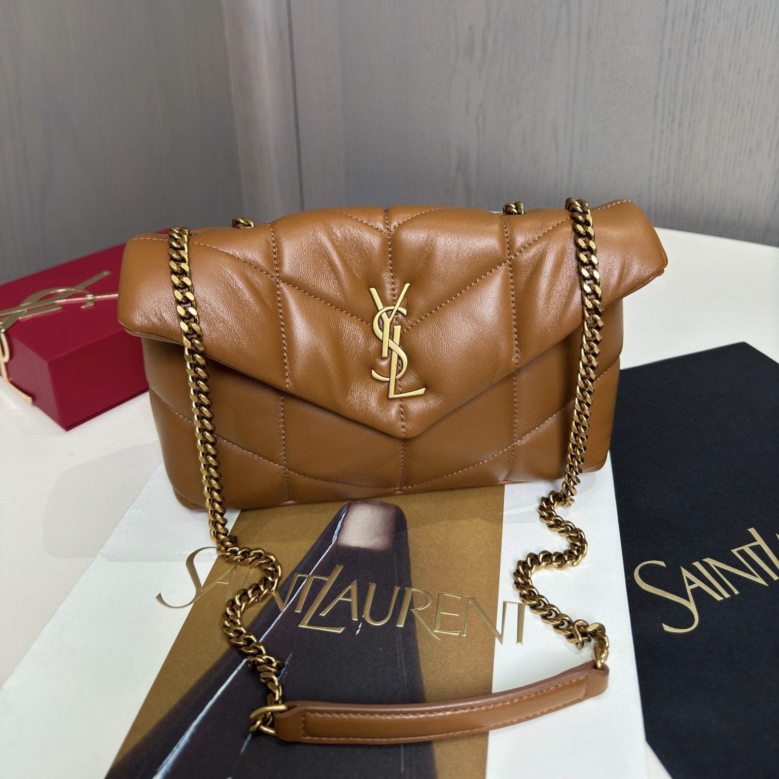 YSL女包官方網站 經典款式 原廠羊皮YSL Puffer 棕色手袋