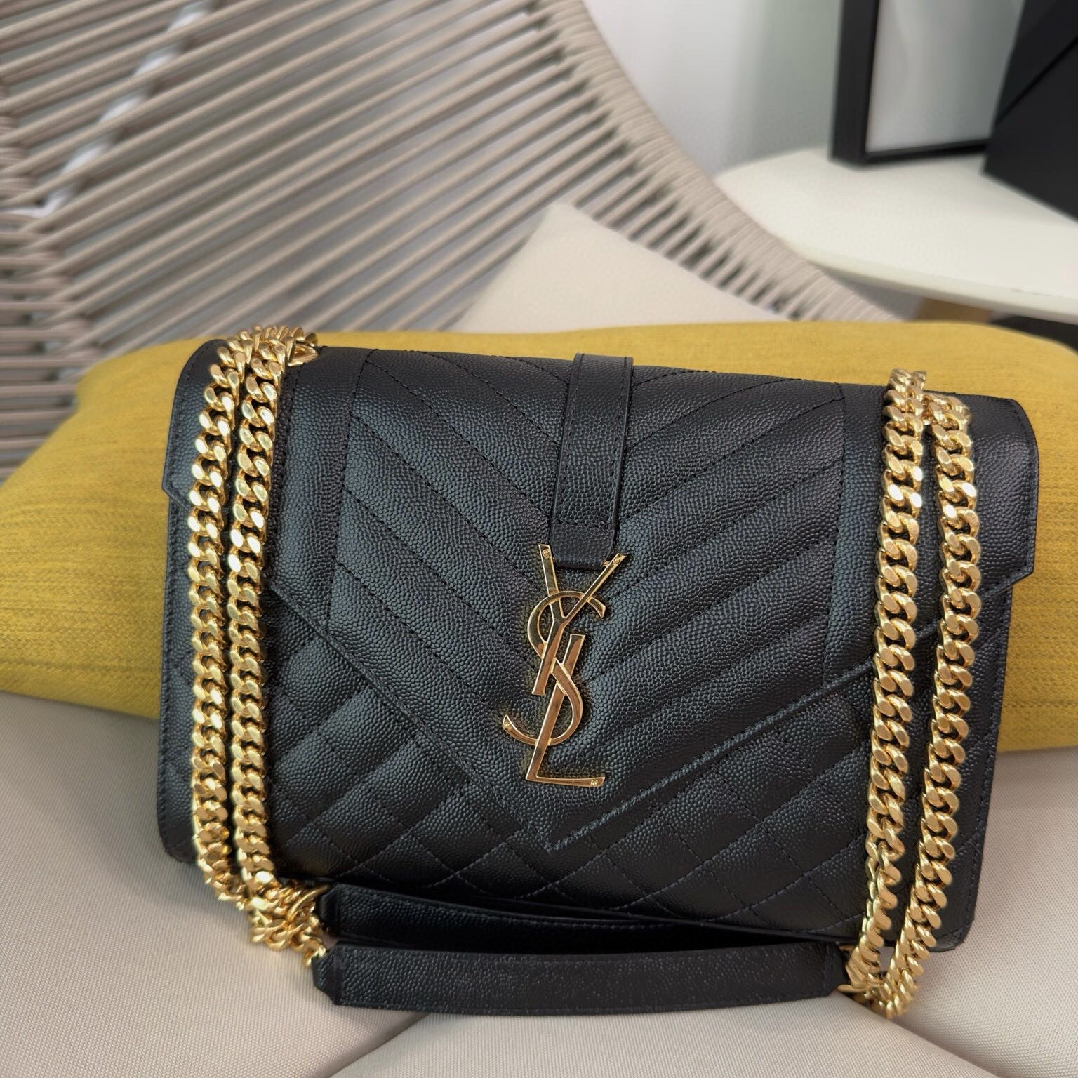 Los Angeles USA YSL ENVELOPE官網中號粒面絎縫皮革手袋