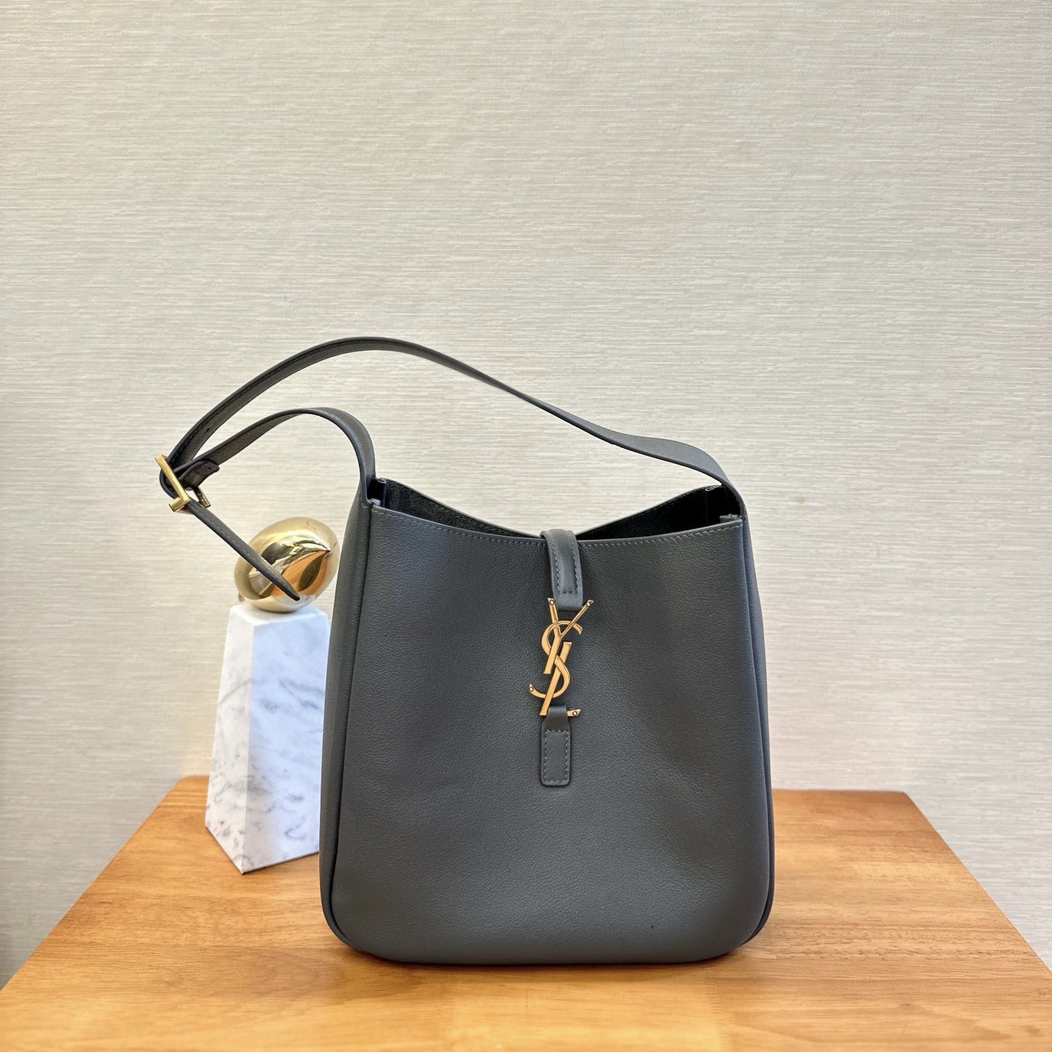 YSL包包官網旗艦店 LE 5 À 7 Hobo灰色光滑皮革手袋