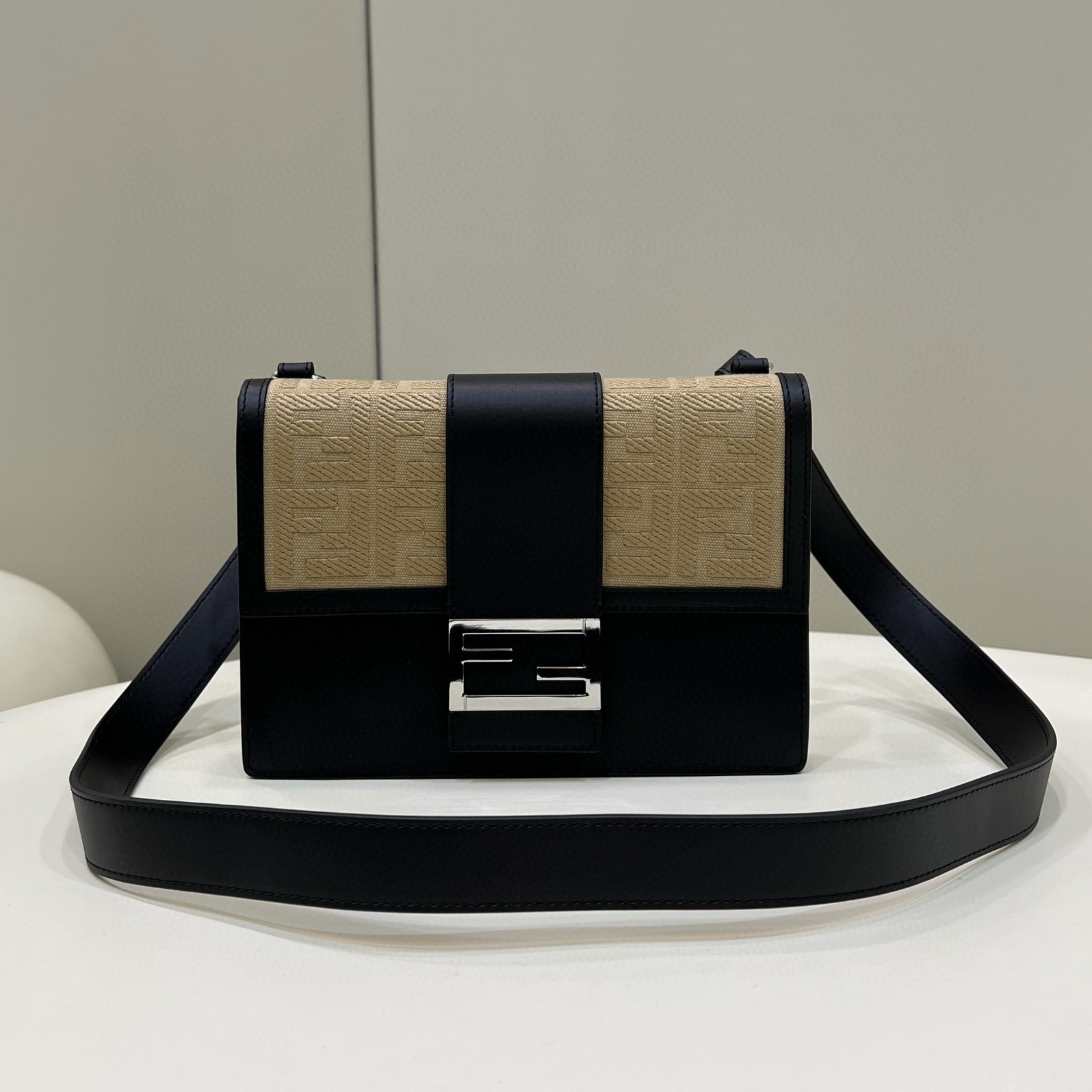 FENDI男士包最新款式官網專櫃款式大全小牛皮帆布baguette斜挎包