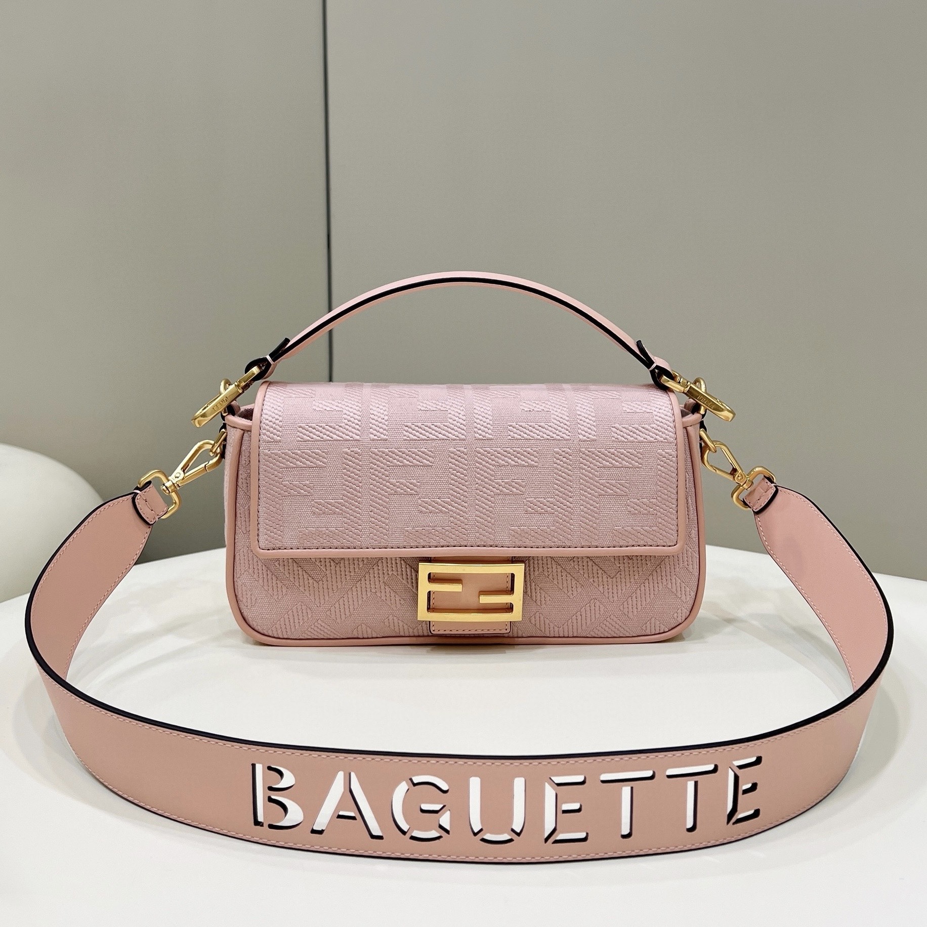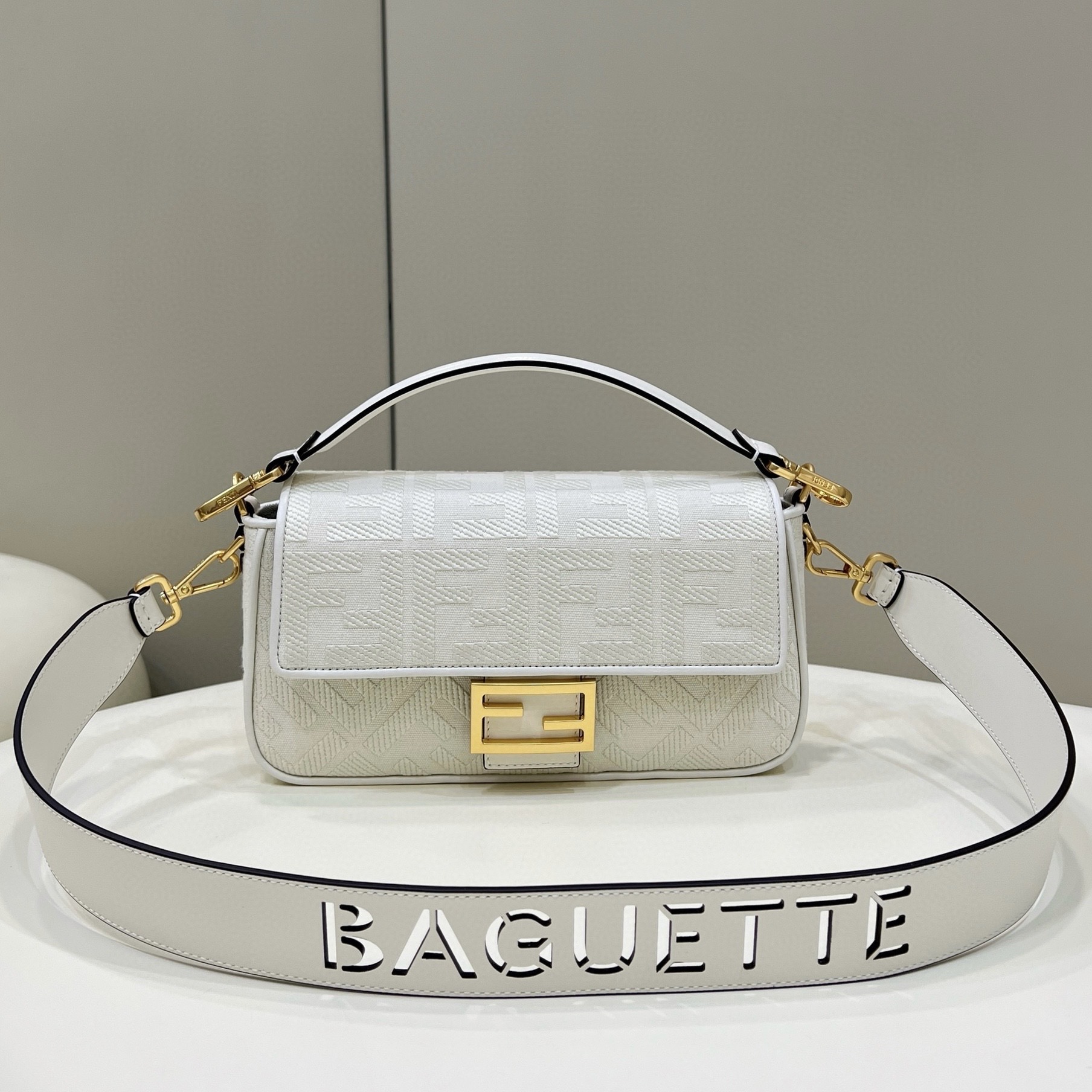 FENDI芬迪品牌正品包包美國官網專賣店 Baguette中號手袋 FF圖案刺繡
