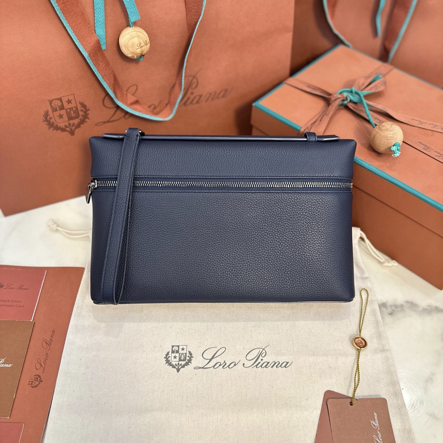 LORO PIANA諾悠翩雅品牌包包官方網站 新款藍色錘紋小牛皮Extra Pouch 手拿包