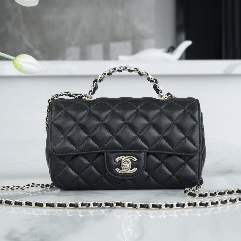 Chanel女包 美国西雅图官方网站价格及图片 中號黑色 𝐜𝐡𝐚𝐧𝐞𝐥 𝟐𝟑𝐀水鉆手柄cf