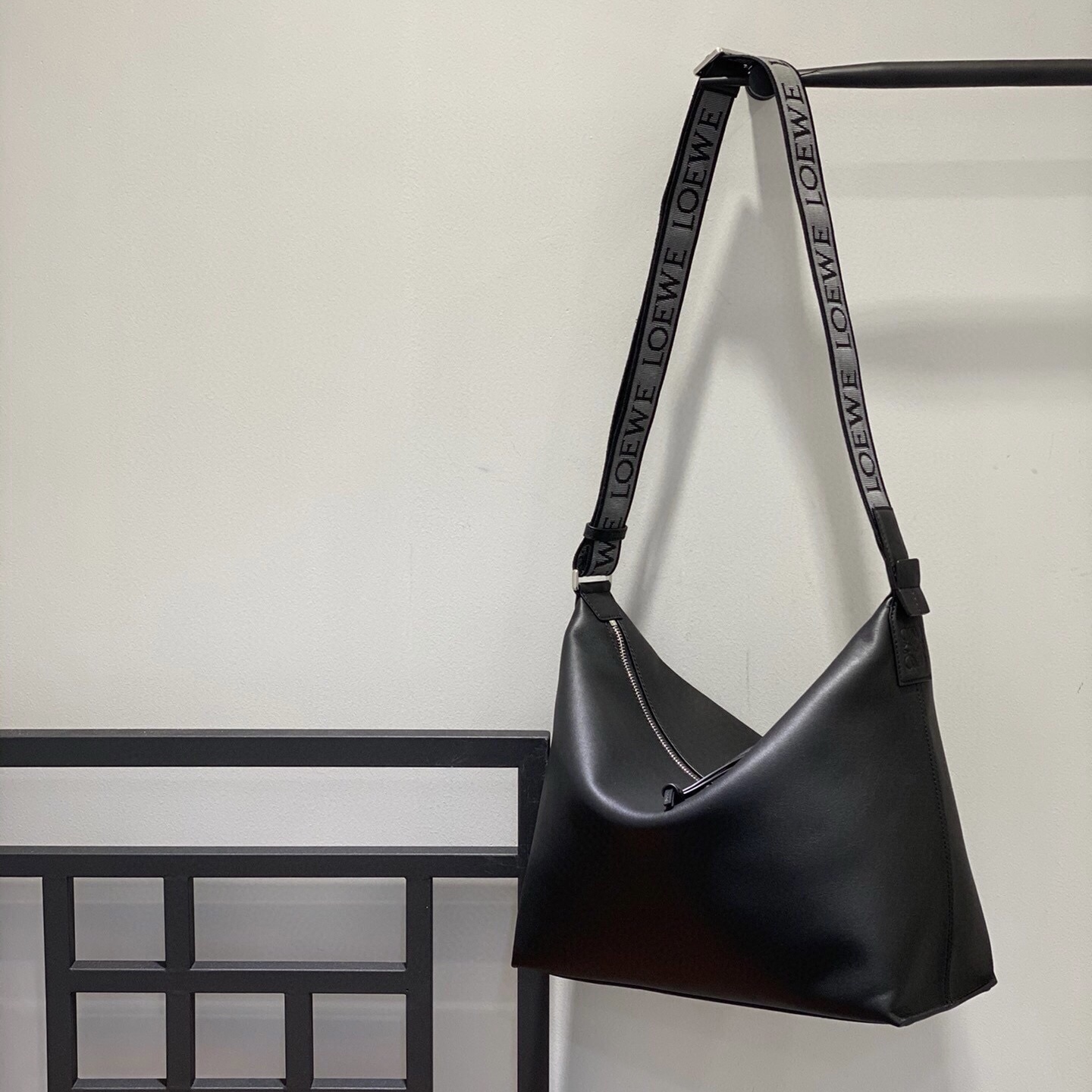 LOEWE羅意威包包官網款式大全 新款黑色粒面牛皮革 Cubi 斜挎包
