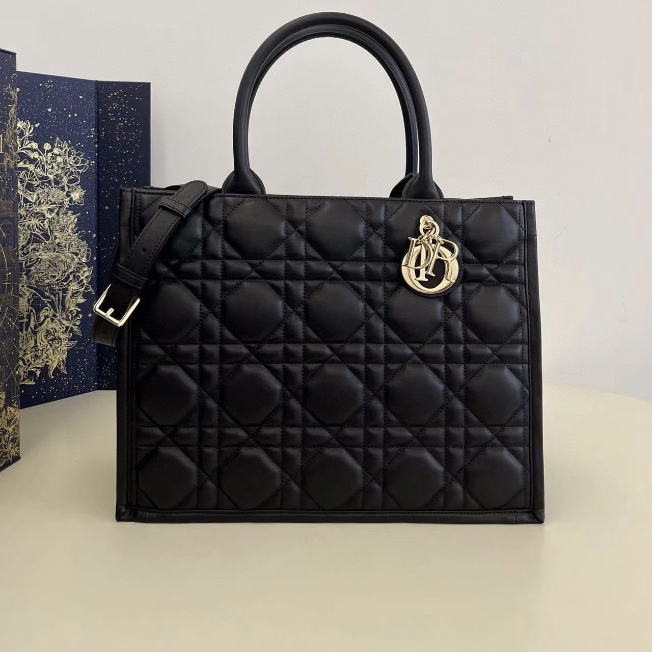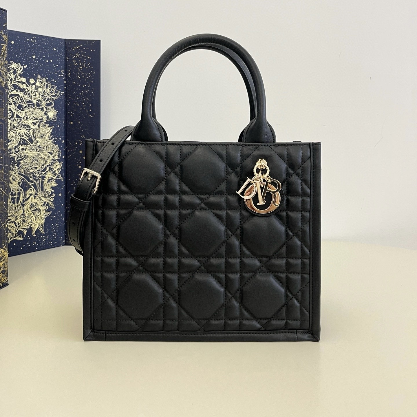 Dior女包 香港官方旗舰店 小号 Book Tote 手袋 黑色牛皮革超大藤格纹