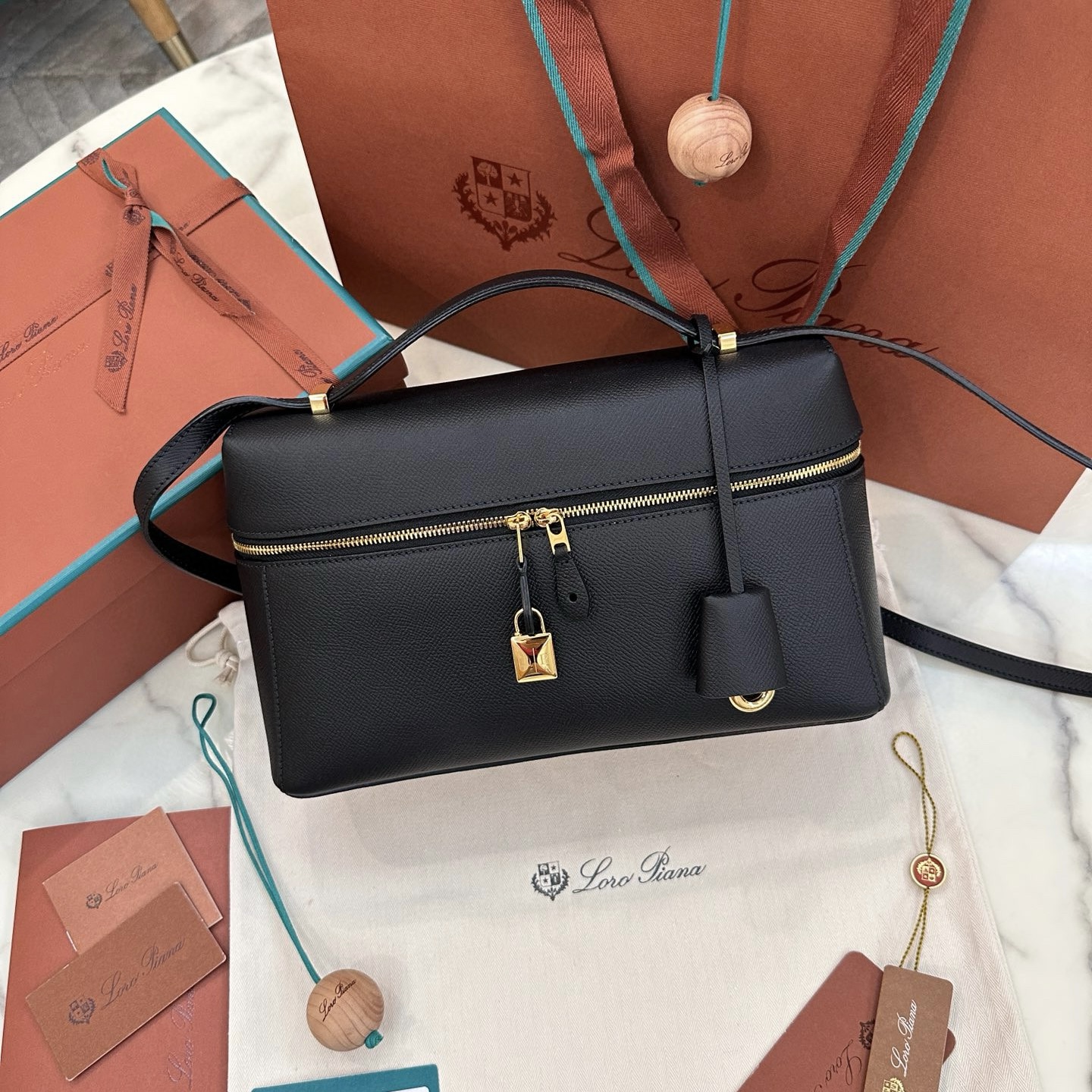 loro piana包經典Extra Pocket L27系列網站 黑色小牛皮手袋
