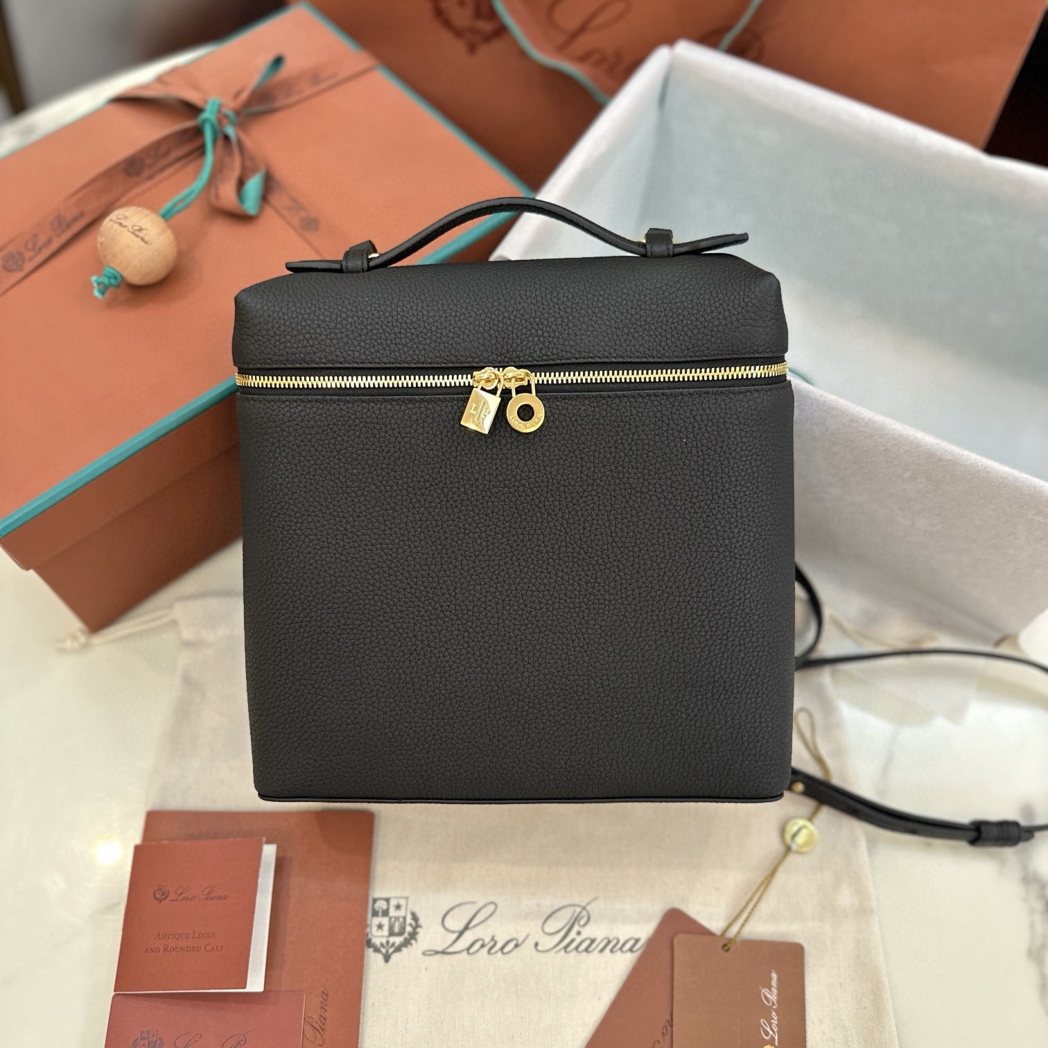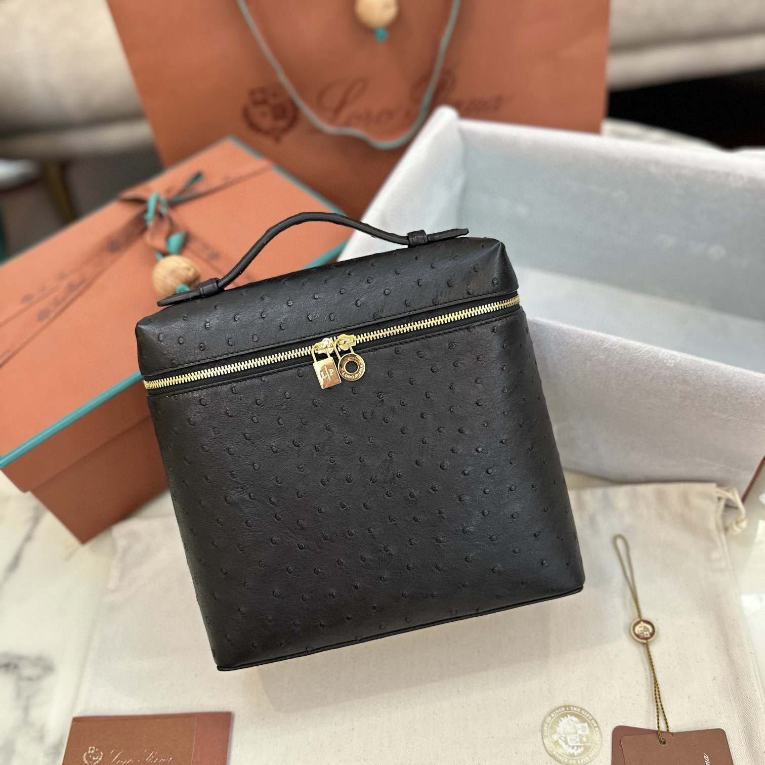 Loro piana女包新款鴕鳥皮 黑色 Extra Pocket L23.5雙肩包 FAN4194