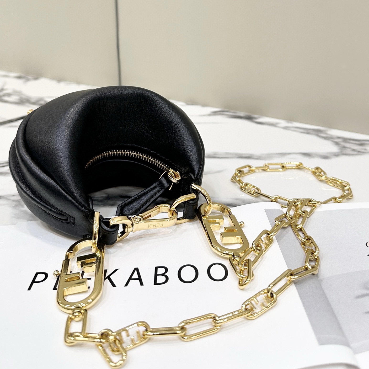 FENDI芬迪包包官網 最新款黑色牛皮革Fendigraphy Mini新月包肩背包