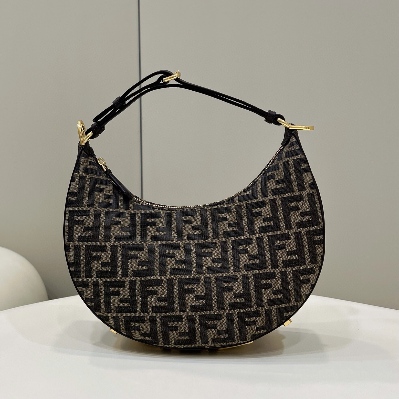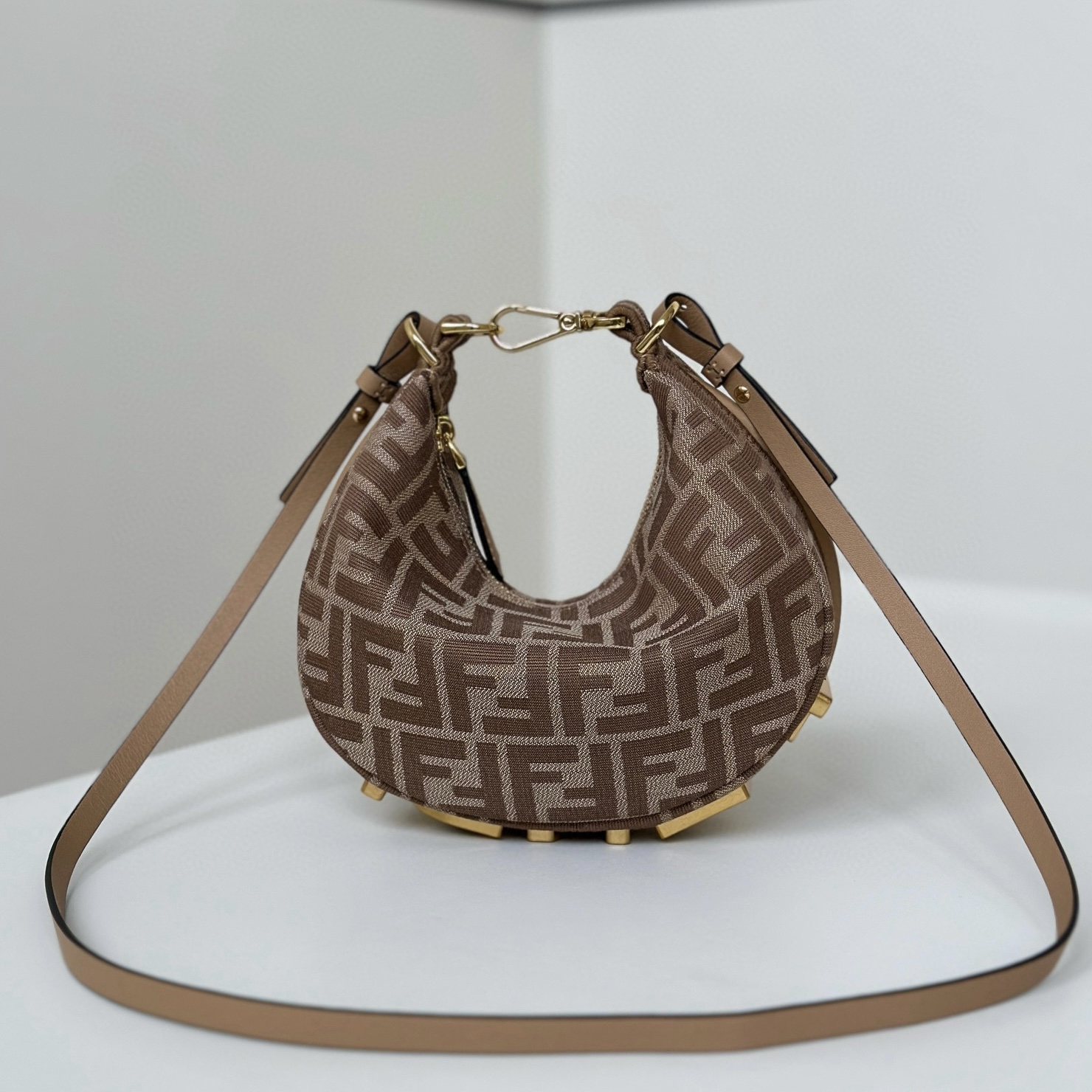 FENDI女包官網新款Fendigraphy小號手袋 棕色FF提花月亮包