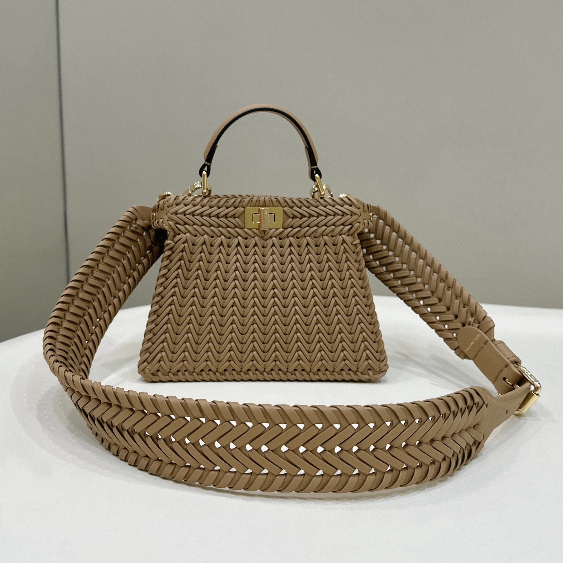FENDI女士包 Japan官網專櫃Peekaboo ISeeU Petite 編織皮質手袋