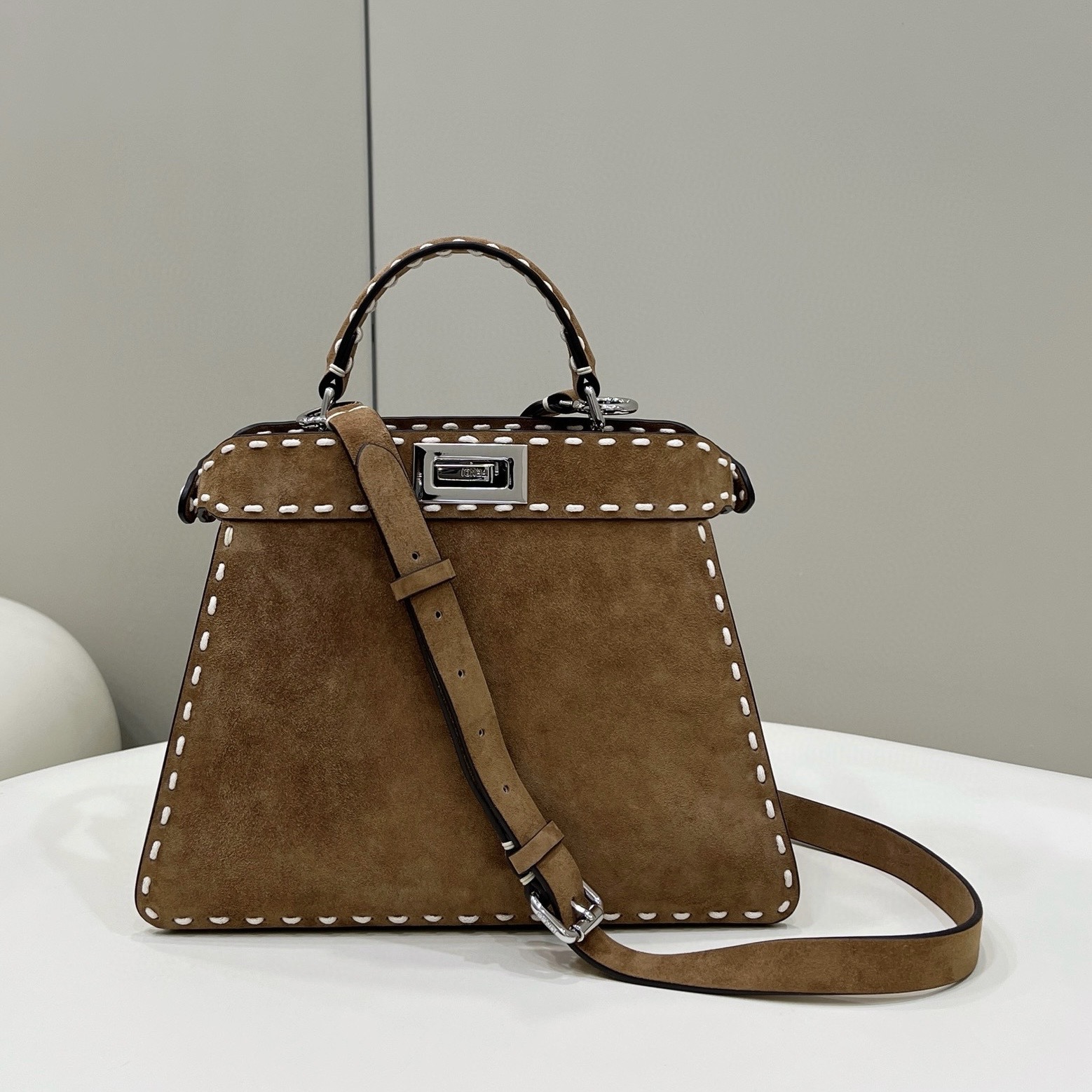 FENDI芬迪包包是輕奢還是奢侈品 Peekaboo迷你手袋 棕色麂皮Selleria手袋